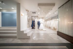 新しく生まれ変わった店内では、これまで以上にゆったりとした空間の中で、特別な一着をお選びいただけます。