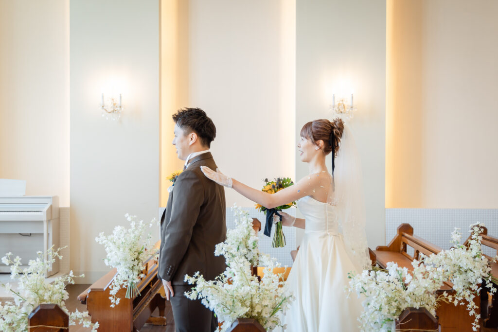 後ろで待ち構えている新郎様もびっくりです(笑)