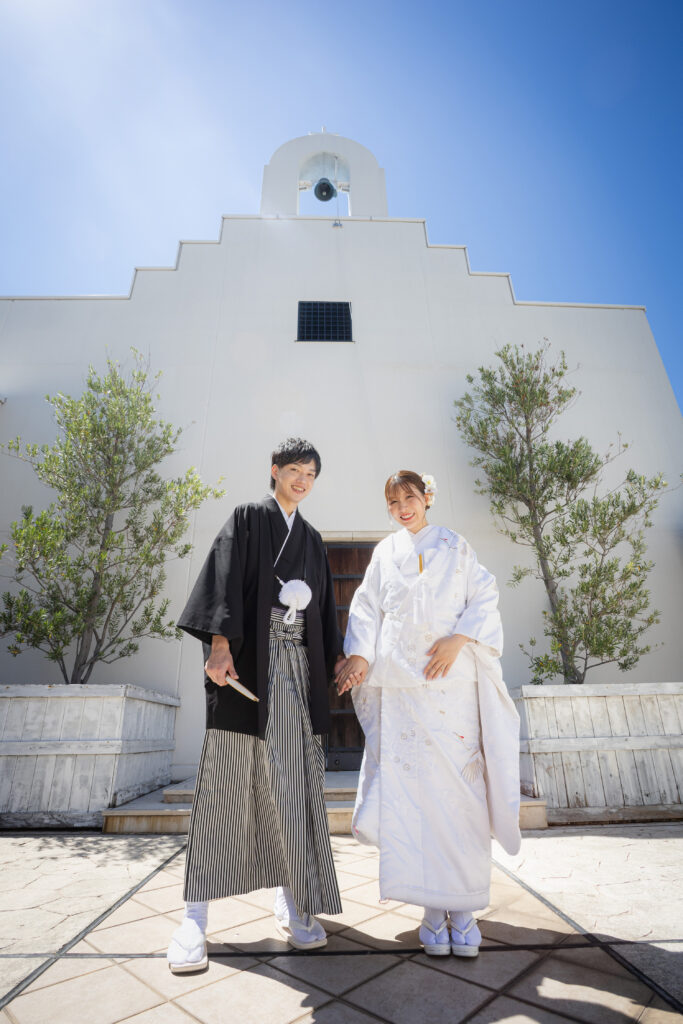 純白のチャペルと白無垢が織りなす、上品で美しいひととき。